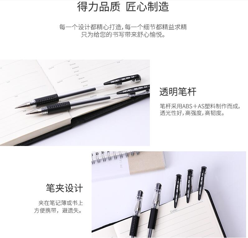 得力文具33140中性筆學(xué)生考試量販?zhǔn)胶诠P水筆碳素筆0.5mm辦公用品包郵書寫工具60支裝