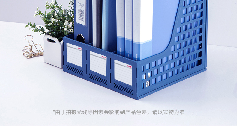 得力(deli)三聯鏤空桌面文件框 三欄帶標簽穩(wěn)固文件欄/文件筐/資料框 黑色