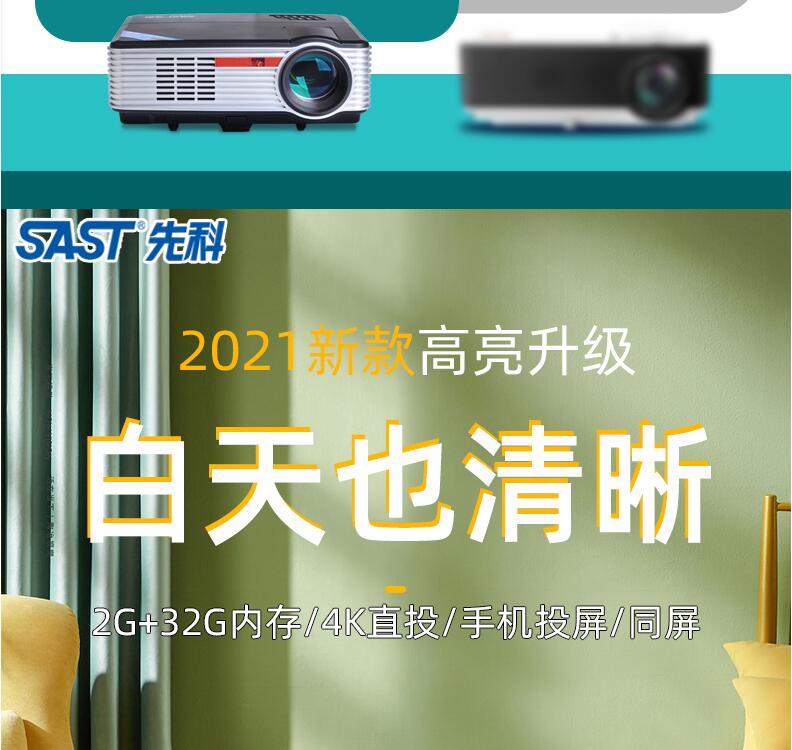 先科投影儀家用臥室小型 便攜4k超高清一體機可連手機投影電視高清1080p智能家庭影院辦公會議培訓(xùn)教學(xué)投影機